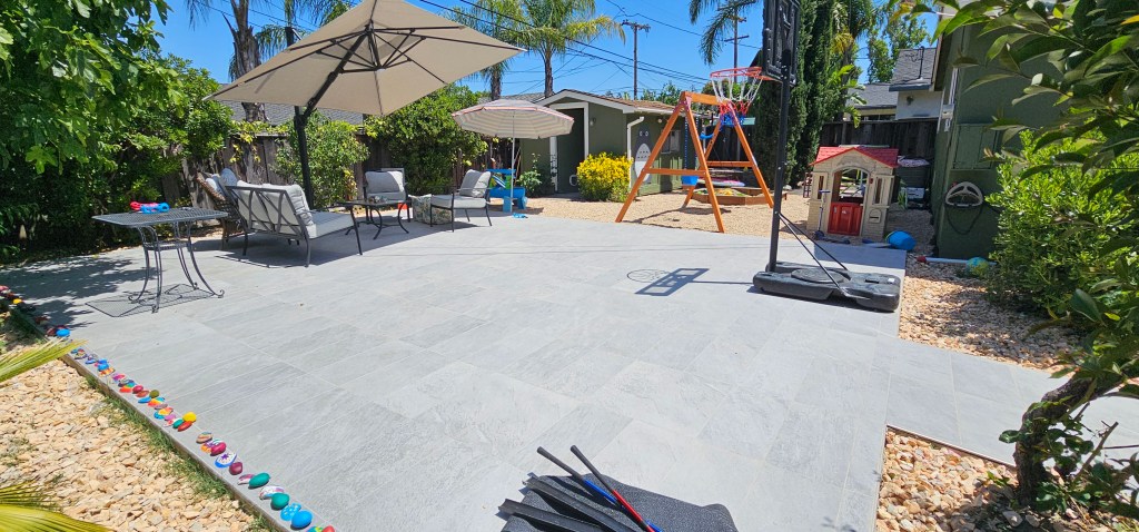 500 Square feet of 4 inches thick steel re-enforcements Concrete over Gray Tiles.